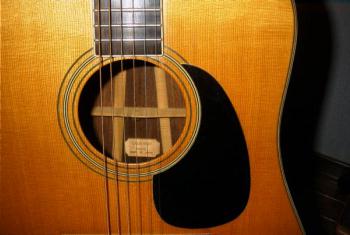 | ご近所さんから譲ってもらった 名機「S.yairi YD-305」 トップ:スプールス単板 サイド:ローズウッド単板(3ピース中央のみ) バック:ローズウッド 井上陽水も使っていたS.yairi・・・。 3ピースは優しい響きですね。 ちょっとD-35を意識した音ですね。 |